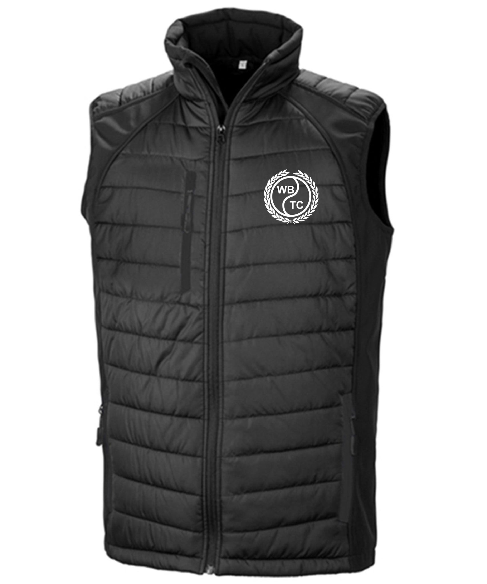 Complete with your club logo embroidered to the left breast. On-trend padded plus softshell combination. Supersoft, lightweight and warm. Quiet to wear. Contrast colour pocket zips. Full front zip with chin guard. Stand-up padded collar. Padded body. Soft bound armhole. Black zip pulls. Hangtag. Oeko-Tex certified.